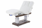 Стол имеет несколько секций и 4 мотора для удобной настройки положения подвижных частей ложемента. Мягкое ложе создаёт высокий уровень комфорта во время процедуры, а широкий диапазон настроек позволяет мастеру качественно выполнить любую задачу. Надёжная рамка из стали выдерживает до 150 кг, что гарантирует безопасность и долгий срок службы изделия.